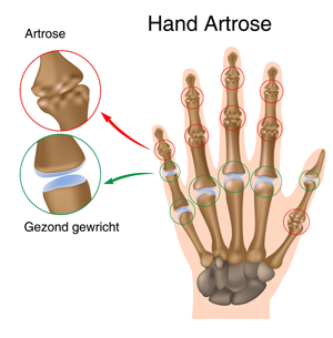 Bij vrouwen komt 2,6 keer vaker artrose aan de handen voor dan bij mannen. We denken dat dit te maken heeft met de hormonale veranderingen die optreden na de overgang, en het feit dat vrouwen vaak wat meer beweeglijkheid hebben in hun gewrichten.